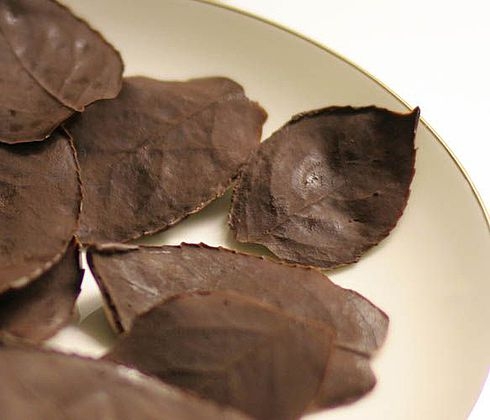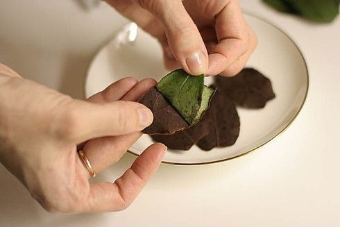 - Вынуть часа через два из холодильника, и отделить листья от шоколадок. Рисунок каждого листа отпечатался на шоколадке.