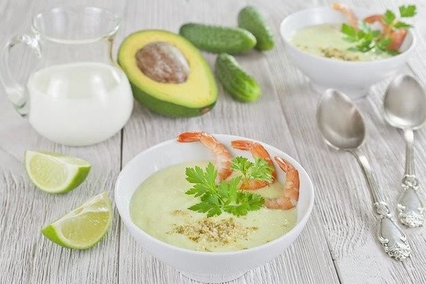 3. Холодный суп с авокадо и креветками