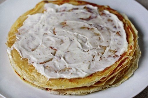 - Если нет сиропа, тогда растопить 1/2 часть плитки шоколада и полить блинчик