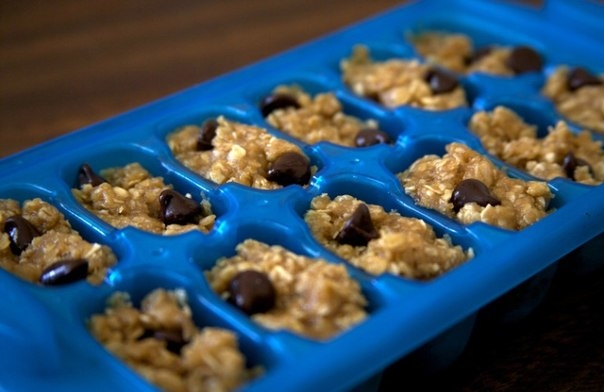 Порции теста для выпечки замороженные в форме для льда.