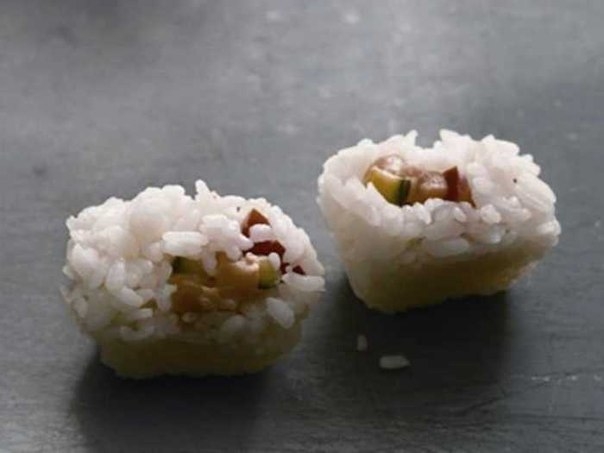 Маленькие суши, сделанные с помощью формы для льда.