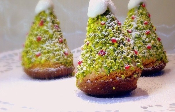 Сахарную пудру смешать с лимонным соком и этой глазурью чайной ложкой сверху полить деревца.