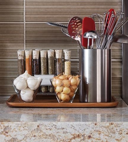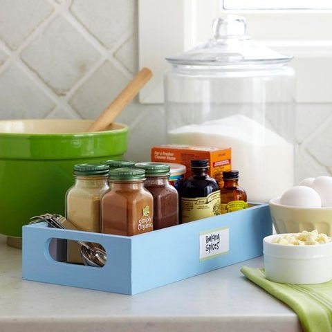 Если вы собрались готовить, достаньте необходимые вам специи и поставьте их на поднос, которой в свою очередь поместите рядом с местом, где вы готовите — возле плиты или на кухонном острове. Имея все под рукой, вам не придется бегать по кухне, чтобы достать специи.