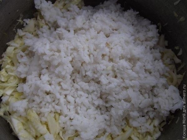 Если отварной рис имеется, то блюдо готовится еще быстрее, если такового нет, тогда отправляем его вариться. Готового риса нужно не менее 2 стаканов.