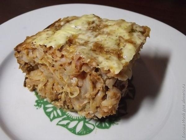 Готовые голубцы немного должны постоять в форме, чтобы они держались формы. Нарезаем получившуюся «запеканку» на квадратики и подаем к столу. Прекрасным дополнением к ленивым голубцам будет сметана или любой соус, который вы обычно подаете к классическим голубцам.
