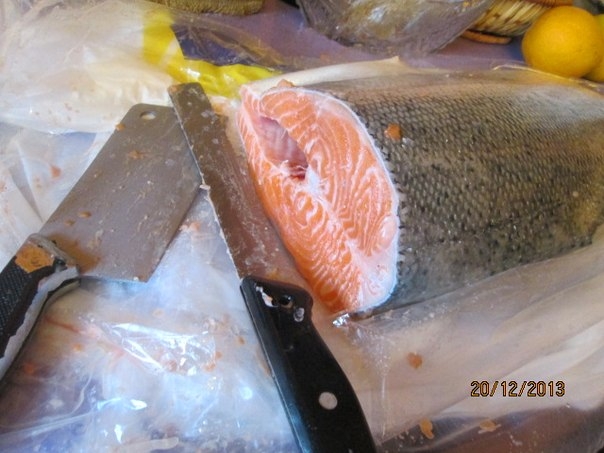 Достала я специальный острый нож, которым режу рыбу. Он очень удобный и острый.