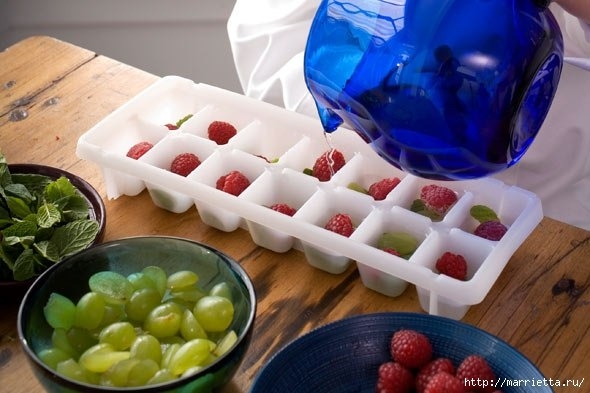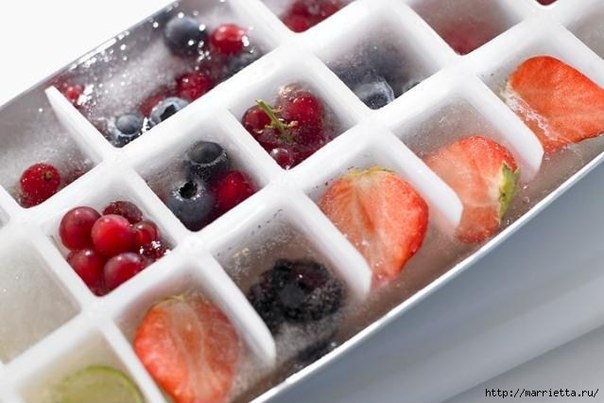 Как красиво! Как мне нравятся эти фруктовые ледяные кубики, особенно для освежающих напитков. Но, так как с публикацией я опоздала и пить освежающие напитки поздновато, предлагаю вам использовать ледяные кубики с фруктами и цветами в качестве косметического очень эффективного средства. Ниже - статья со способами приготовления, применения, показаниями и противопоказаниями для разных типов кожи)