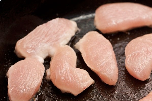 Одна из самых распространенных и любимых версий салата цезарь - с курицей. Это вполне объяснимо, потому что с кусочками курицы этот салат из легкой закуски превращается в такое же легкое, но все же полноценное блюдо. Курицу для салата можно поджарить или запечь целым куском, а затем разрезать на небольшие кусочки, а можно сразу нарезать и обжарить со всех сторон.