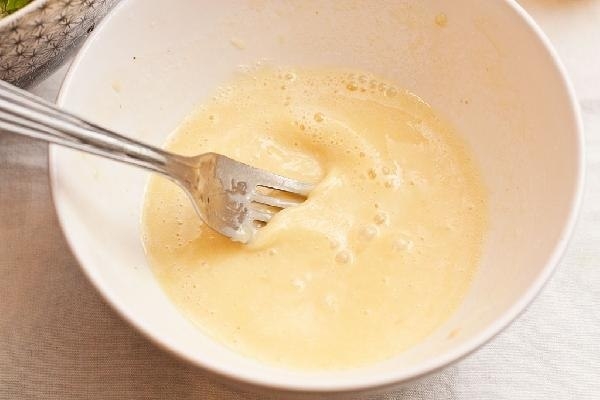 Основу соуса для цезаря составляют яйца, которые ужно опустить в кипящую воду ровно на одну минуту, затем вынуть и остудить. За это время все вредные бактерии, находящиеся на поверхности скорлупы умрут, белок частично схватится, но само яйцо останется сырым. Разбейте яйца в миску. К яйцам влейте лимонный сок, оливковое масло, и вустерский соус. Туда же добавьте растертый чеснок с солью и маслом.