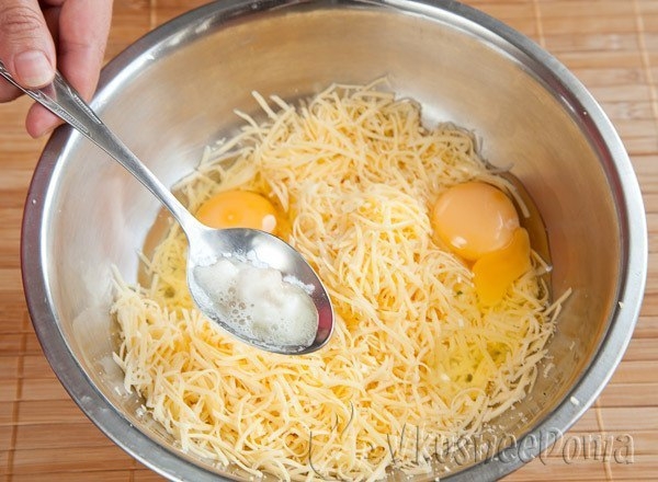 Гасим соду уксусом (или добавляем 1/3 чайной ложки разрыхлителя).