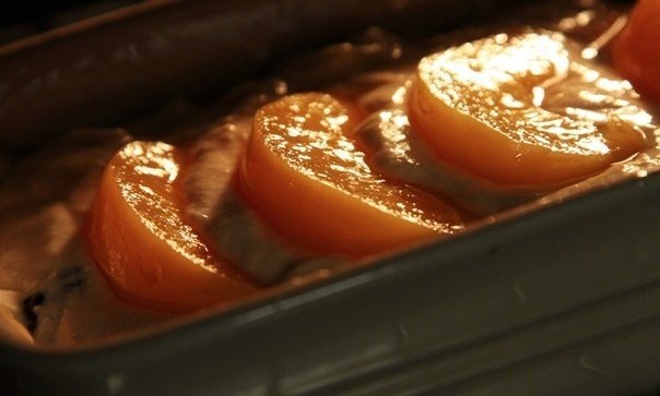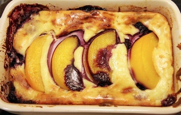 Запеканочка из рикотты с ягодами и персиками