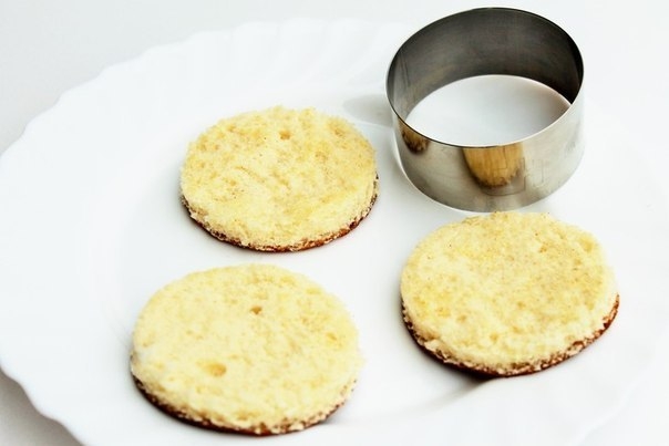 На диск из бисквита укладываем крем. Отправляем десерт на 10 минут не более в морозильную камеру для охлаждения. Если есть время то поместите десерт в холодильник на 3-4 часа.