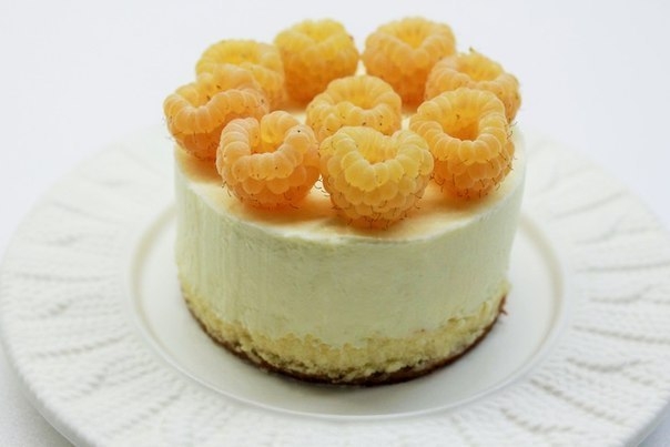 Выкладываем желтую малину так, чтобы отверстие было сверху. Если нет желтой малины берите красную, тоже эффектно смотрится.