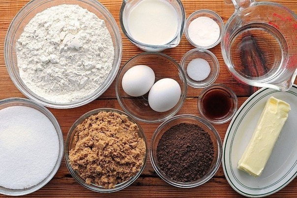 Этот торт просто великолепен! И основную роль здесь играет крем: нежный сливочный сыр Маскарпоне, сливки и шоколадно-ореховая паста Нутелла создают поистине непревзойденное сочетание вкусов и ощущений. Добавьте орехи, и устоять будет невозможно! Итак, разогрейте духовку до 180 градусов. Смешайте муку, какао порошок, соль и соду.