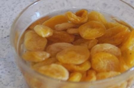 Курагу заливаем горячей водой, оставляем на 5-10 минут, сливаем жидкость , остужаем , режем соломкой.