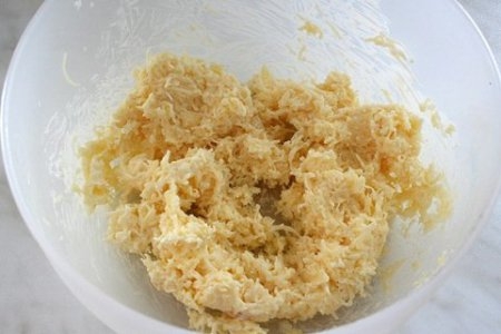 Шаг 2 Трем на мелкой терке сыр, добавляем 2 столовые ложки майонеза и 1 зубчик чеснока, пропущенный через пресс. Хорошо перемешиваем.
