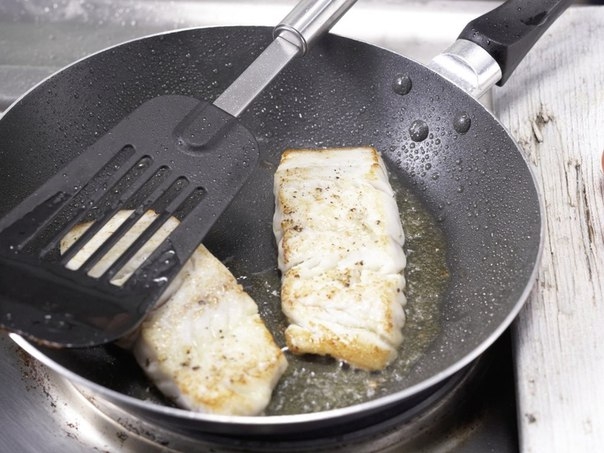 5. В другой сковородке нагрейте оставшееся оливковое масло и обжарьте рыбу с каждой стороны по 3-4 минуты (в зависимости от толщины филе).