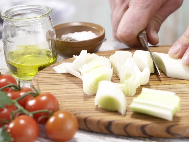 2. Тем временем, разрежьте лук-порей вдоль пополам, тщательно вымойте и высушите салфетками. Нарежьте его крупными ломтиками.