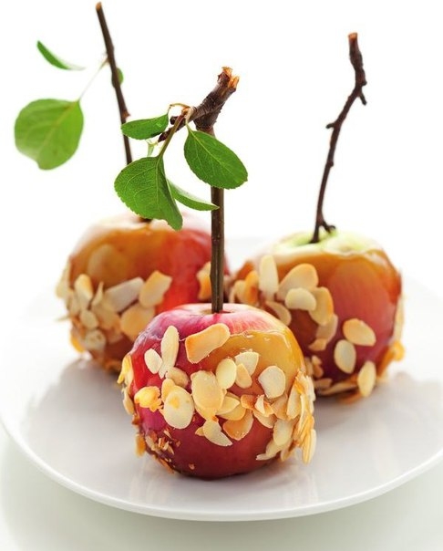 Это одно из самых популярных угощений на европейских рождественских ярмарках. Мы предлагаем вам сделать яблоки с соусом из ирисок и миндальными лепестками. Эту красивую и полезную сладость оценит вся семья.