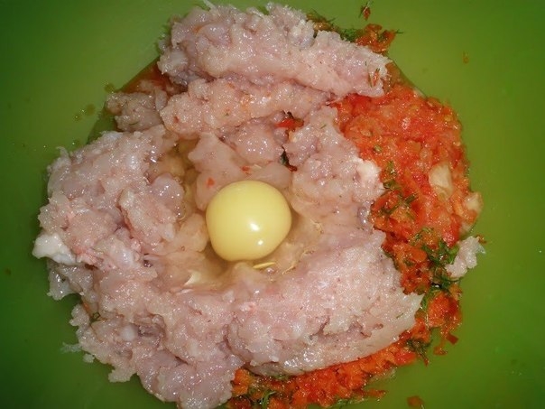 1. Зелень и овощи изрубить в блендере. Мясо прокрутить через мясорубку или также изрубить в блендере. Можно взять уже готовый фарш.Смешать фарш с овощами, добавить масло, яйцо, приправы. Все хорошенько перемешать. Сформировать котлетки. Варить в пароварке 20 минут (так в рецепте, но я варила 30 ...боюсь)