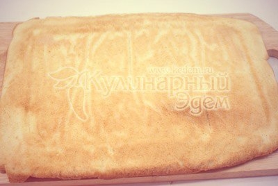 Выпекать в разогретой до 200 градусов духовке 15 минут. Снять корж с пергамента и дать остыть.
