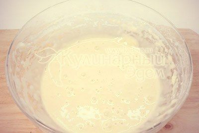 Белки взбить с сахаром в плотную пену. Желтки взбить до бела.