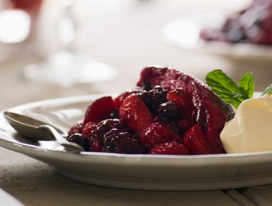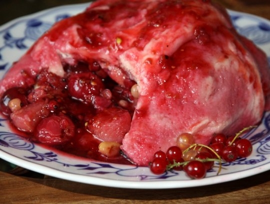 3. Вылейте горячие ягоды в миску с хлебом. Небольшую часть сиропа оставьте, чтобы потом полить готовый пудинг. Накройте ягоды кусками хлеба, сверху положите подходящую по размеру крышку или блюдце, слегка надавив. Когда блюдо достаточно остынет, убирите на ночь в холодильник.