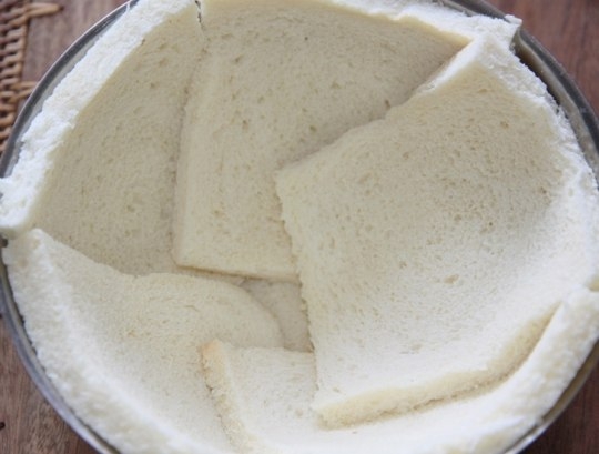 1. Слегка смажьте сливочным маслом форму для пудинга (около 1 литра) и выложите дно и стенки кусками хлеба, чтобы не было промежутков.