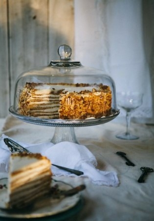 Готовим крем. Взбиваем сливки с добавлением сахара, сметаны и ванили, взбивать следует несколько минут. Прослаиваем коржи таким кремом и убираем в холод на сутки. А для наружной части торта взбиваем сливочный сыр «Филадельфия» вместе с сахарной пудрой и маслом сливочным. Такой крем наносим на бока и верх готового торта. «Винни-Пух» готов!
