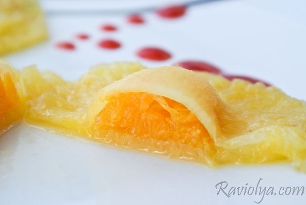 Равиоли из ананаса с клубничным соусом