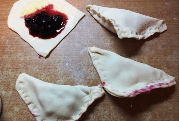 3. Сложите квадрат пополам, так чтобы смородина оказалась внутри и закрепите края.