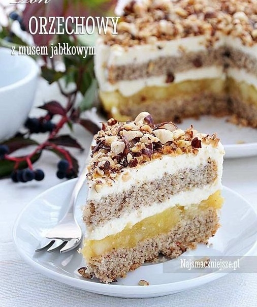 Ореховый бисквит с яблочным муссом и карамелизированными орехами