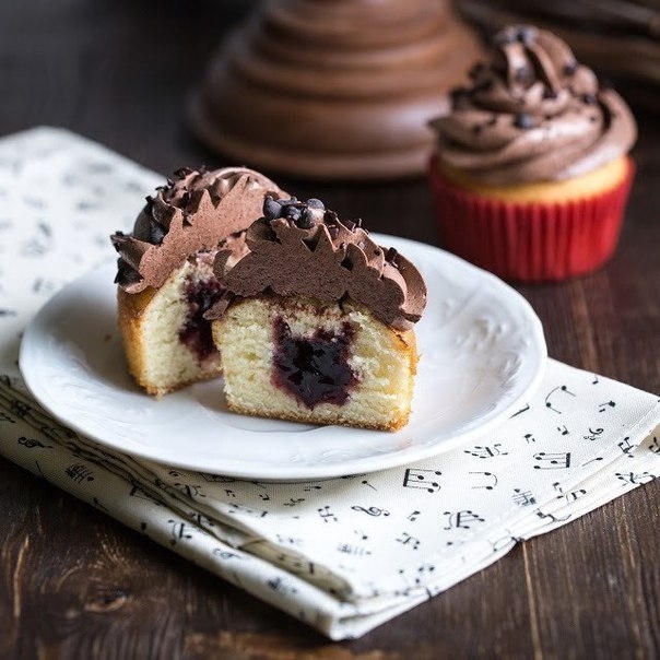 Ванильные капкейки с черешневой серединкой и шоколадным кремом
