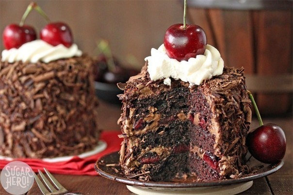 12. Сделайте шапочку из взбитых сливок и украсьте вишней. Храните в холодильнике, перед подачей подержите несколько минут при комнатной температуре.