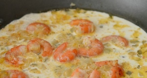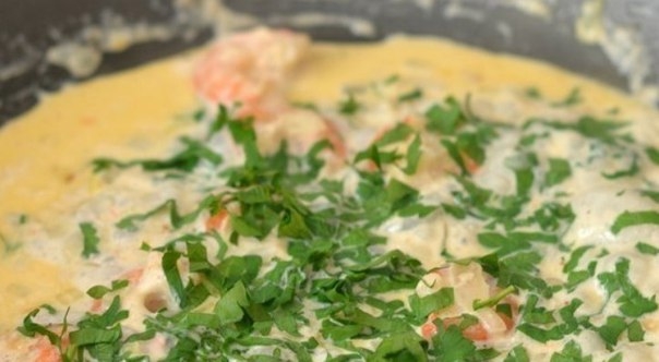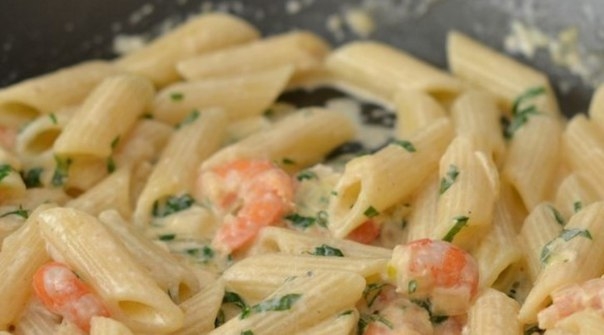 Паста с креветками в чесночно-сливочном соусе !