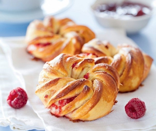 Сдобные ароматные булочки с малиновым джемом придутся по душе и детям, и взрослым. Испеките сразу двойную порцию — они прекрасно замораживаются. Положите замороженную булочку на ночь в холодильник, а утром ее нужно будет только подогреть — и у вас будет прекрасный завтрак.