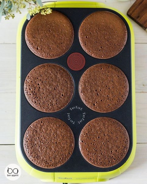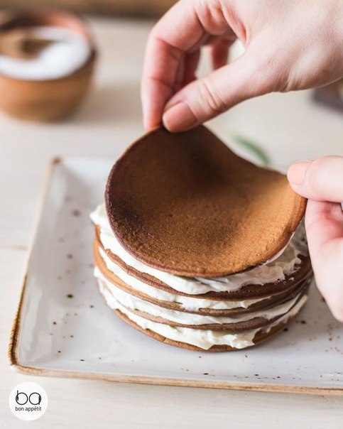 Выкладываем панкейки стопкой, переслаивая кремом.