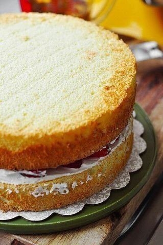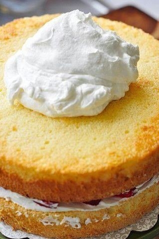 Выложите на блюдо первый корж и смажьте его ромовым сиропом. Выложите часть взбитых сливок, распределите равномерно, разложите нарезанную клубнику и закройте еще одной порцией сливок.