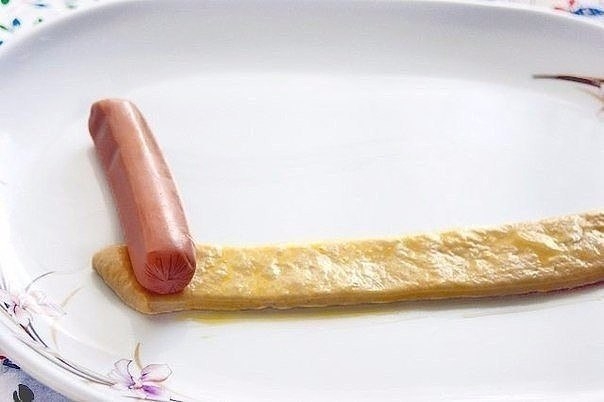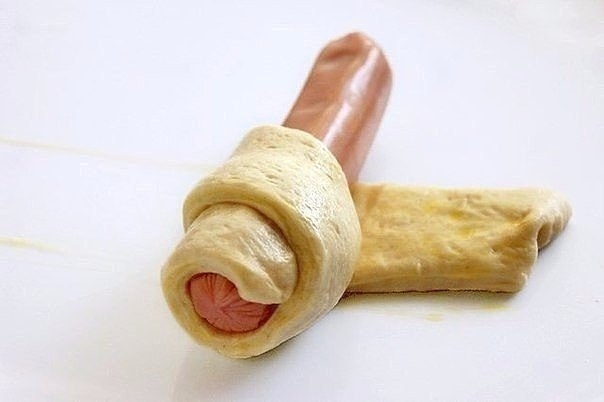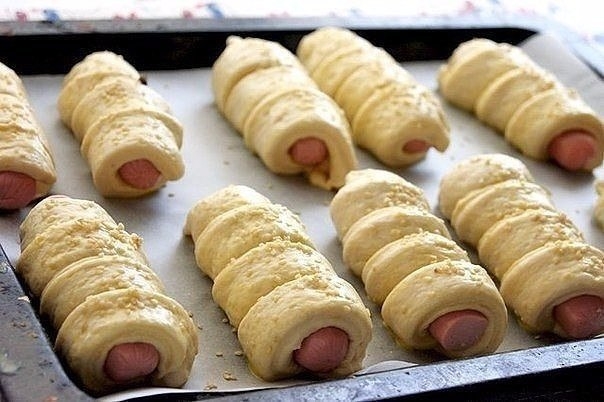 В теплой воде растворяем мед и сухие дрожжи, даем "ожить". Добавляем масло, соль. Постепенно подсыпаем муку и замешиваем тесто. Хорошо вымесить тесто и оставить его подходить минут на 20. Как тесто подошло, немного подмесить его (слегка), раскатать пласт, разрезать его на полоски. Длина полоски зависит от размера сосиски... Полоску можно смазать взбитым яйцом, чтобы они не раскрылись при выпечке. Завернуть в тесто сосиску. Уложить на противень на расстоянии, смазать сверху яйцом, можно посыпать кунжутом. Выпекать в разогретой до 250 С духовке до румяного цвета.