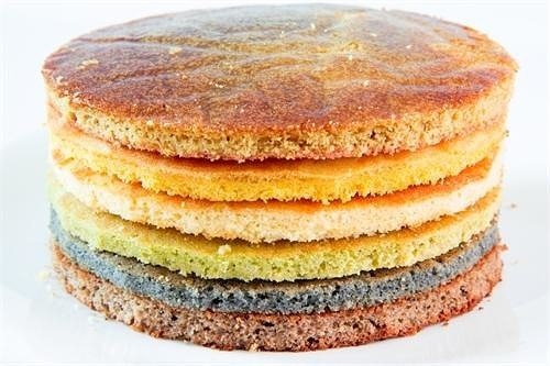 Предлагаем приготовить великолепный торт, наполненный целой радугой вкусов: красный – клубника, оранжевый – апельсин, желтый – лимон, зеленый – киви, голубой – «блю кюрасау», фиолетовый – ежевика. Никаких искусственных красителей - только натуральные фруктовые и ягодные соки и пюре.