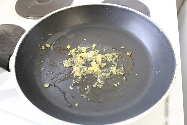 • Обжарить фарш с чесноком в оливковом масле до готовности.