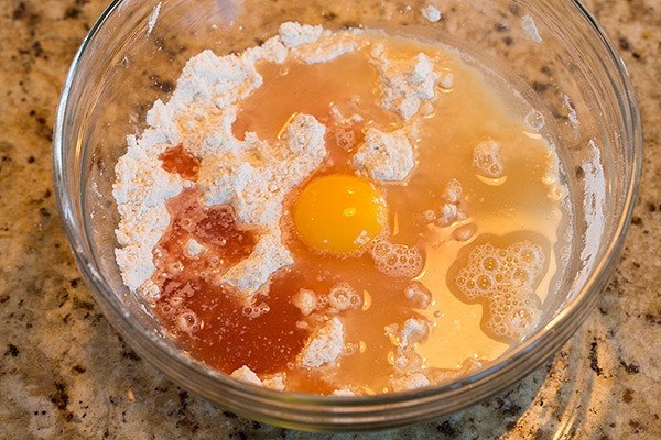 • В миске смешайте вместе муку, сахар, корицу и соль. Добавьте масло и кончиками пальцев втопчите сливочное масло в смесь, пока оно не станет песчаным. Добавьте виноградный сок, уксус и яичные желтки и перемешайте деревянной ложкой, до однородности. Затем вручную сделать почти ровный шар, который разделите на две равные части, распластайте на диски, затем накройте полиэтиленовой пленкой и охладите 45-60 мин.