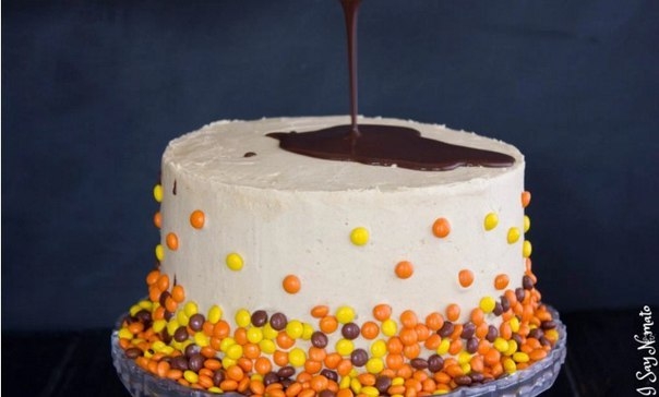 • Украсьте сверху торт конфетами и орехами, или может ваш вариант будет еще лучше?