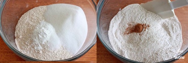 • В это время смешайте сухие ингредиенты (можно добавить немного корицы).