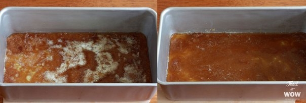 • Достать форму из духовки и перемешать масло с сахаром, распределить смесь равномерно по дну формы.