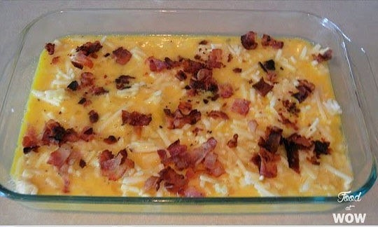 Раскрошить бекон и посыпать кусочки бекона.