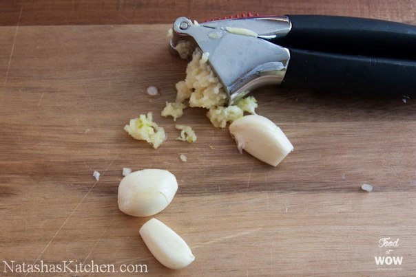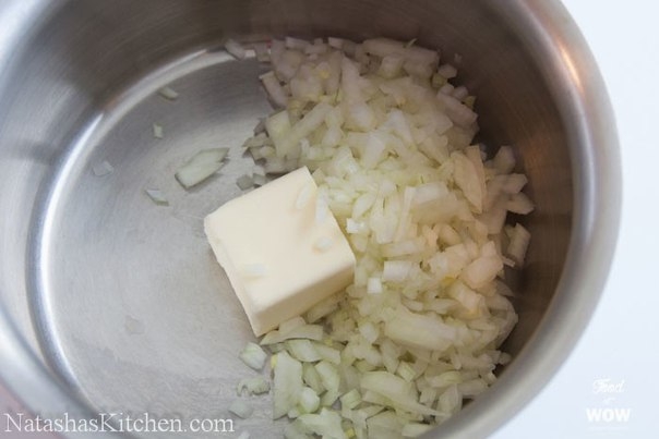 • На сливочном масле обжарить нарезанный лук и давленный чеснок.