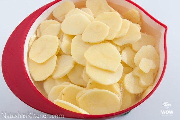 • Нарежьте картофель кружочами и положите в кастрюлю с водой.
