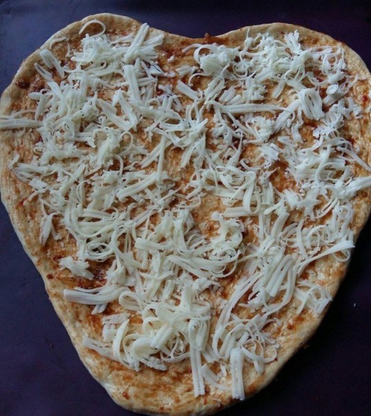 Взять одну часть теста, руками придать желаемую форму. Мне захотелось в форме сердечка. Нанести с помощью силиконовой кисточки аджику на всю поверхность.