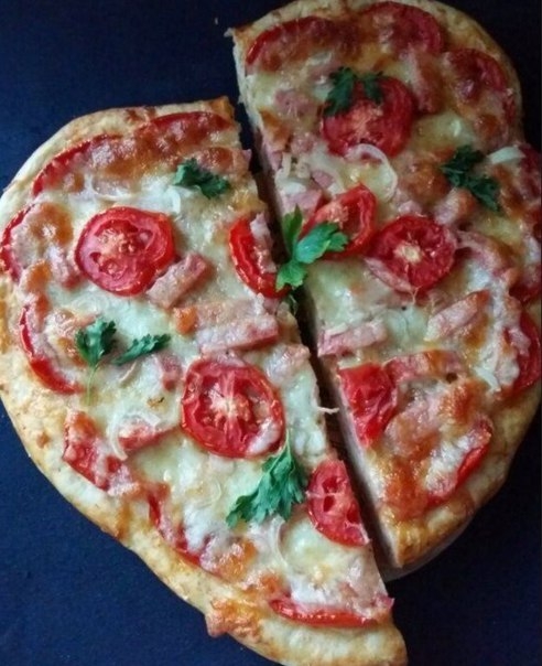 Отправить в разогретую до 210°С духовку на 20-25 минут до золотистого цвета.У нас пицца была на двоих :) Приятного аппетита!